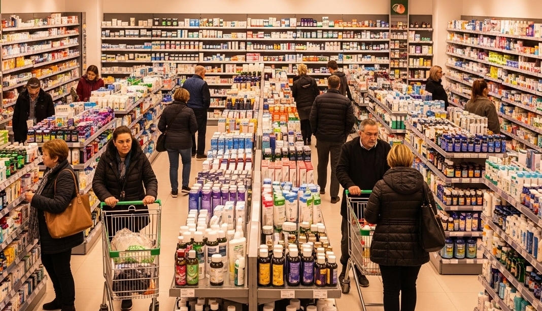 오시리아약국은 약 200평 규모의 대형 약국으로, 고객이 직접 카트를 끌며 쇼핑하는 창고형 약국 스타일로 운영됩니다. 매장 내부에는 다양한 브랜드가 입점해 있으며, 방문객은 전문 약사와의 상담을 통해 제품을 비교하고 선택할 수 있습니다.